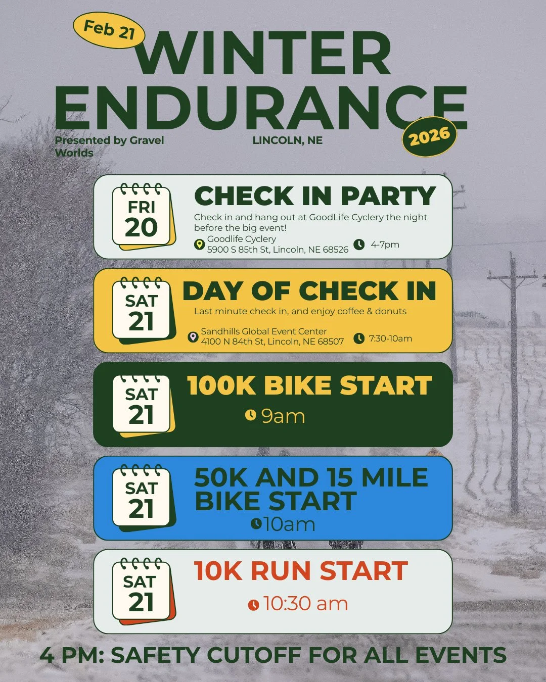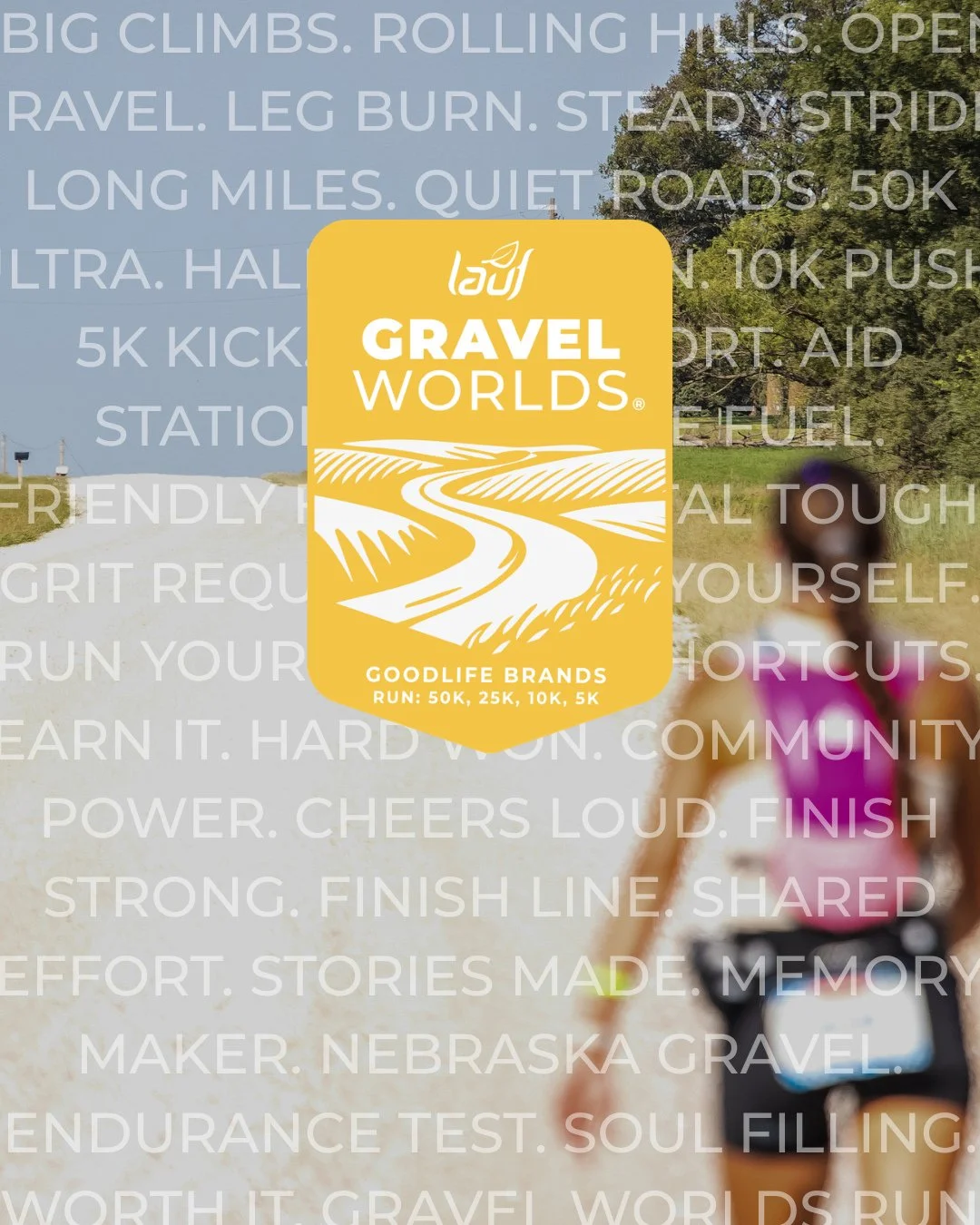 Fully self-supported like our other events, runners will navigate the Nebraska gravel seas with aid stations provided by the Gravel Worlds® crew.